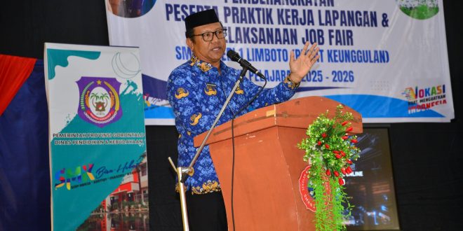 Kabupaten Gorontalo, katalisinfo.com – Sebanyak 279 siswa SMK Negeri 1 Limboto resmi dilepas untuk mengikuti Praktik Kerja Lapangan (PKL) di berbagai perusahaan di Gorontalo, Surabaya, Makassar, Kendari, dan Manado, Senin (1/12/2025). Pelepasan digelar di aula sekolah dan dihadiri oleh Sekretaris Daerah Provinsi Gorontalo, Sofian Ibrahim.