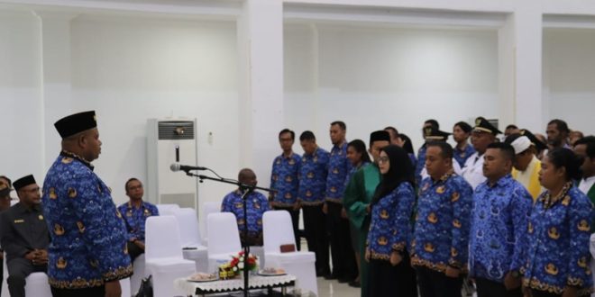 Bupati Supiori lantik 193 pejabat baru dan tegaskan integritas, disiplin, serta inovasi untuk mendukung pembangunan berbasis ekonomi biru. (foto: MC Kab Supiori)