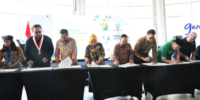 Jakarta, Katalis Info — Pemerintah Provinsi Gorontalo memperkuat langkah transformasi digital melalui penandatanganan Nota Kesepahaman (MoU) dengan Kementerian Komunikasi dan Informatika (Kominfo) serta 35 mitra strategis lainnya. Penandatanganan dilakukan oleh Wakil Gubernur Gorontalo, Idah Syahidah Rusli Habibie, dan disaksikan langsung oleh Menteri Komunikasi dan Digital, Meutya Hafid, di FX Sudirman, Senayan, Jakarta, Jumat (21/11/2025).