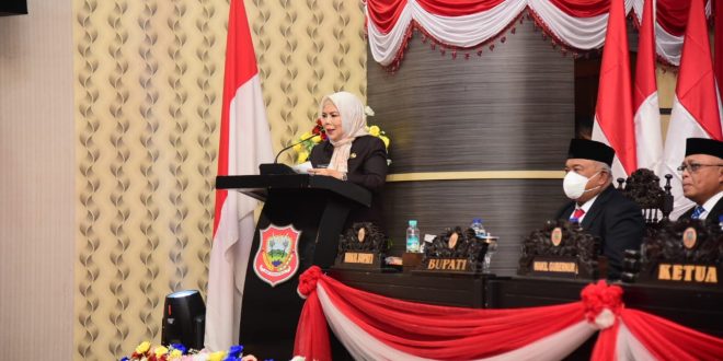 Kabupaten Gorontalo, Gorontalo, katalisinfo.com – Peringatan Hari Ulang Tahun (HUT) ke-352 Kabupaten Gorontalo menjadi momentum untuk memperkuat inovasi dan kebersamaan dalam pembangunan daerah. Hal ini disampaikan Wakil Gubernur Gorontalo, Idah Syahidah Rusli Habibie, saat menghadiri Rapat Paripurna Istimewa DPRD Kabupaten Gorontalo di Limboto, Rabu (26/11/2025).