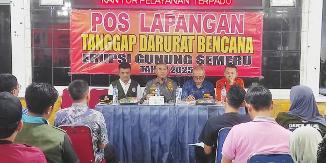 Lumajang, Katalis Info — Pemerintah Kabupaten (Pemkab) Lumajang menegaskan pentingnya penguatan sistem informasi resmi dalam penanganan darurat erupsi Gunung Semeru. Penegasan ini disampaikan Sekretaris Daerah Lumajang, Agus Triyono, yang juga bertugas sebagai Pelaksana Harian Sistem Komando Penanganan Darurat Bencana (SKPDB), saat memimpin Evaluasi Pos Komando Penanganan Darurat Bencana (PDB) Erupsi Semeru di Pendopo Kecamatan Pronojiwo, Jumat (21/11/2025).