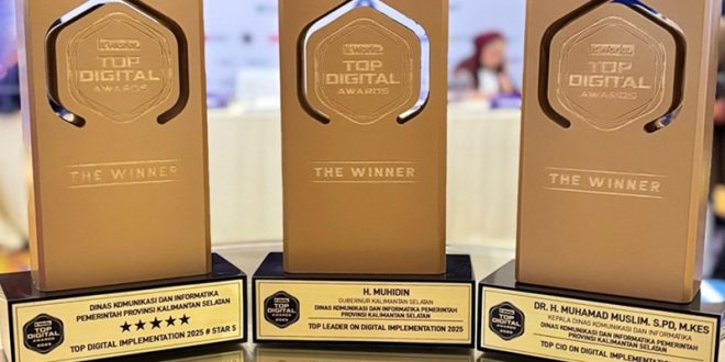 Banjarbaru, katalisinfo.com – Pemerintah Provinsi Kalimantan Selatan (Pemprov Kalsel) kembali menorehkan prestasi di bidang transformasi digital. Melalui Dinas Komunikasi dan Informatika (Kominfo), Pemprov Kalsel meraih dua penghargaan bergengsi pada ajang Top Digital Awards 2025, yakni TOP DIGITAL Implementation 2025 Bintang Lima dan TOP Chief Information Officer (CIO) on Digital Implementation 2025.