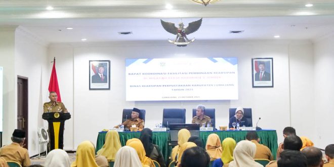 Katalisinfo.com,Lumajang – Pengelolaan arsip yang tertib dan sistematis menjadi pilar penting bagi pemerintahan yang transparan dan akuntabel. Hal ini ditegaskan Sekretaris Daerah Kabupaten Lumajang, Agus Triyono, saat membuka Rapat Koordinasi Fasilitasi Pembinaan Kearsipan di wilayah kerja Bakorwil V Jember, yang digelar di Ruang Nararya Kirana, Kantor Bupati Lumajang, Selasa (21/10/2025).