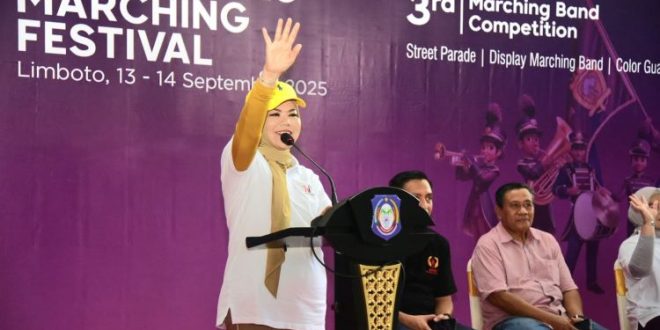 Katalisinfo.com, Kabupaten Gorontalo – Wakil Gubernur Gorontalo Idah Syahidah Rusli Habibie menegaskan Hulonthalo Marching Festival (HMF) 2025 memiliki nilai positif besar bagi generasi muda. Selain menumbuhkan kreativitas, festival ini juga melatih kedisiplinan, kebersamaan, serta menjadi ajang unjuk prestasi pelajar.