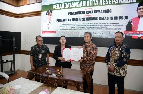 Katalisinfo.com, Semarang – Wali Kota Semarang, Agustina Wilujeng, menandatangani nota kesepakatan dengan Pengadilan Negeri (PN) Semarang Kelas IA, Kamis (2/10/2025), di Ruang Rapat Wali Kota, Balai Kota Semarang. Kesepakatan ini bertujuan memperkuat sinergi dalam menghadirkan layanan hukum dan pelayanan publik yang lebih transparan, nyaman, dan akuntabel.