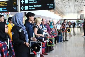 Para traveller dari berbagai penjuru dunia—mulai dari Jerman, Singapura, Korea, hingga Perancis—terlihat berhenti sejenak, tersenyum, dan bahkan mengabadikan momen. Beberapa di antaranya tampak larut, mengangguk-angguk mengikuti irama, sementara yang lain mencoba bertanya kepada pemandu bandara tentang makna setiap tabuhan. “It feels so warm, so welcoming,” ujar seorang wisatawan asal Jerman dengan mata berbinar, sambil merekam pertunjukan melalui gawainya.